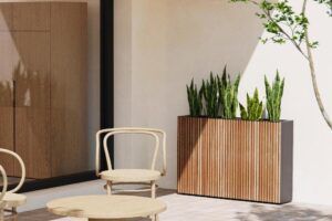 Gi hagen eller terrassen et naturlig og varmt preg med en elegant og funksjonell plantekasse i tre som også fungerer som en romdeler. Med mål på 120x25x80 cm gir den god plass til dine favorittplanter, samtidig som den skaper en estetisk avgrensning i uterommet eller innendørs. Laget av holdbart treverk som tåler vær og vind, kombinerer den praktisk funksjonalitet med tidløst design.