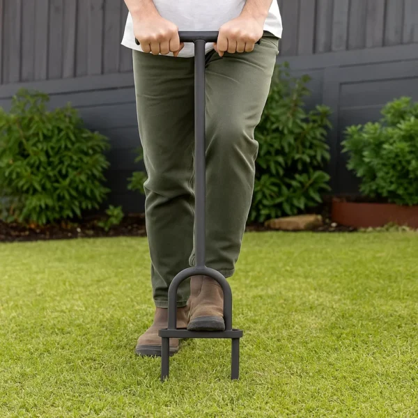 Denne robuste plenlufteren er designet for å forbedre helsen til plenen din ved å fjerne uønsket mose og dødt gress. Med en arbeidsbredde på 32 cm dekker den et betydelig område, noe som gjør prosessen rask og effektiv. Ved å lufte plenen regelmessig, sikrer du at vann, næringsstoffer og oksygen når røttene, noe som resulterer i en tettere og grønnere plen. For optimal ytelse anbefales det å bruke plenlufteren på tørt gress og deretter rake opp det løse materialet. Regelmessig bruk, spesielt om våren og høsten, vil bidra til å opprettholde en sunn plen.