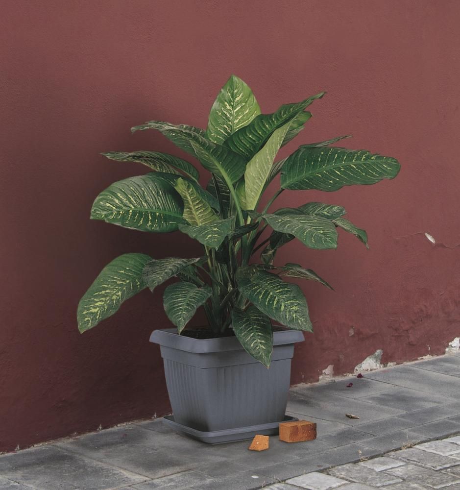 Firkantede plastpotter i terracotta-imitasjon. Gjennomfargede og svært holdbare potter som tåler mange års bruk uten å falme. Ideell for både innendørs og utendørs bruk. Skål kan kjøpes som tilbehør.