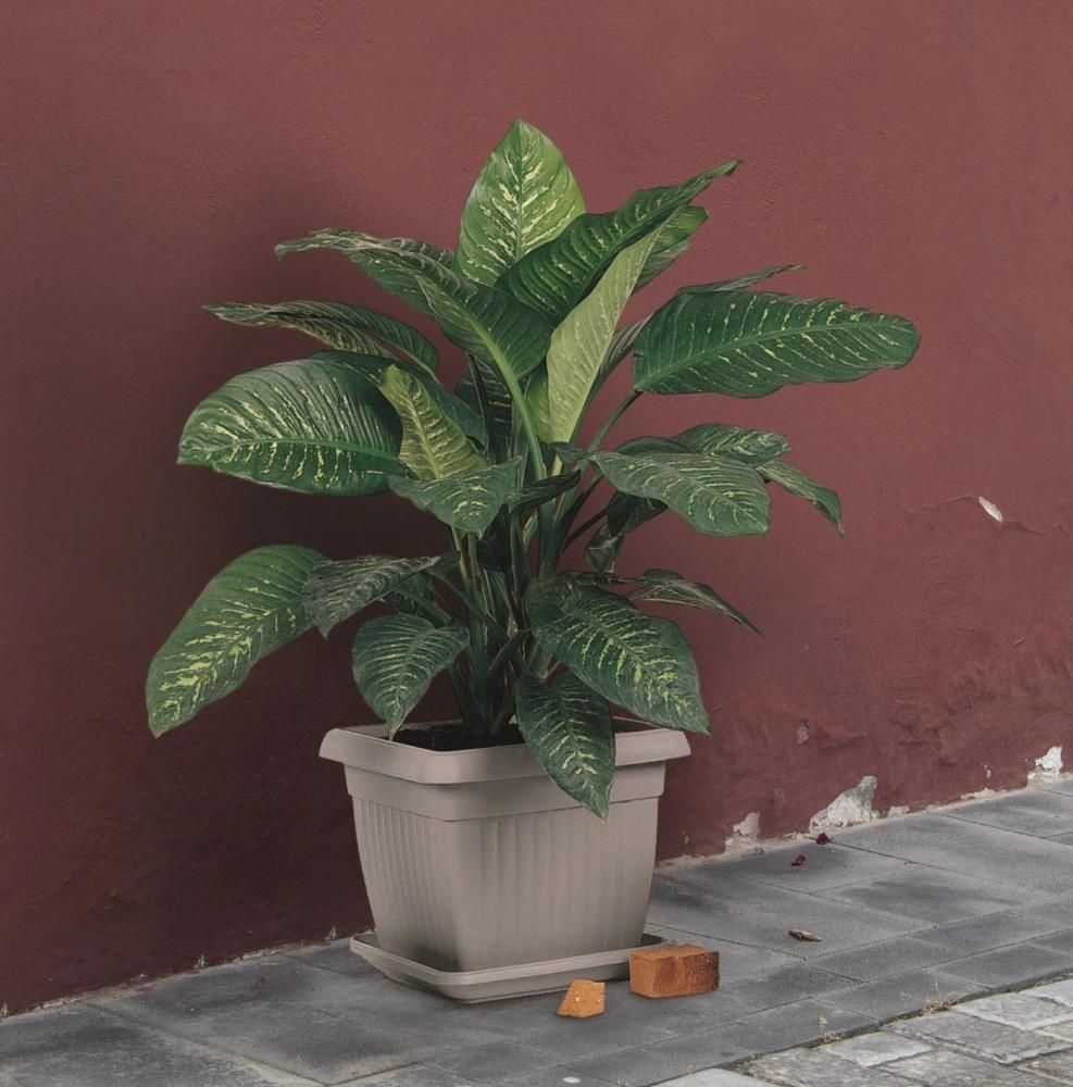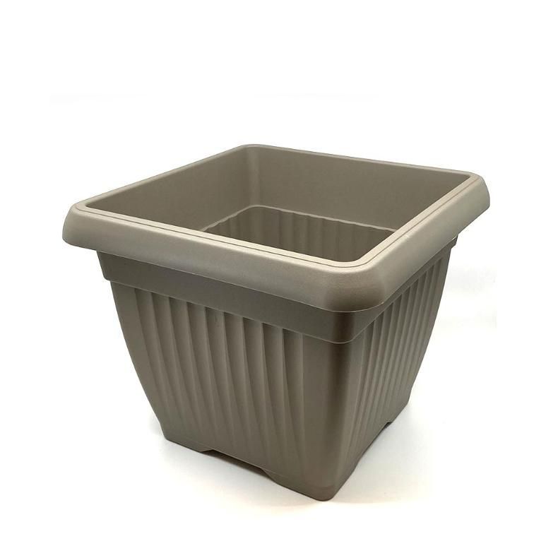 Firkantede plastpotter i terracotta-imitasjon. Gjennomfargede og svært holdbare potter som tåler mange års bruk uten å falme. Ideell for både innendørs og utendørs bruk. Skål kan kjøpes som tilbehør.