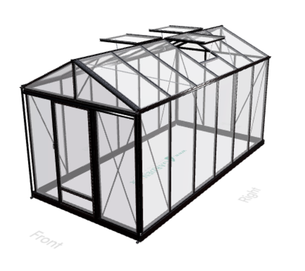 Drivhuset leveres med 4 mm herdet glass som gir maksimal lysgjennomgang og et stabilt vekstmiljø. Herdet glass er både tryggere, mer solid og mer motstandsdyktig mot vind enn standard drivhusglass. Sammen med den robuste rammen får du en konstruksjon som tåler skiftende vær over tid.