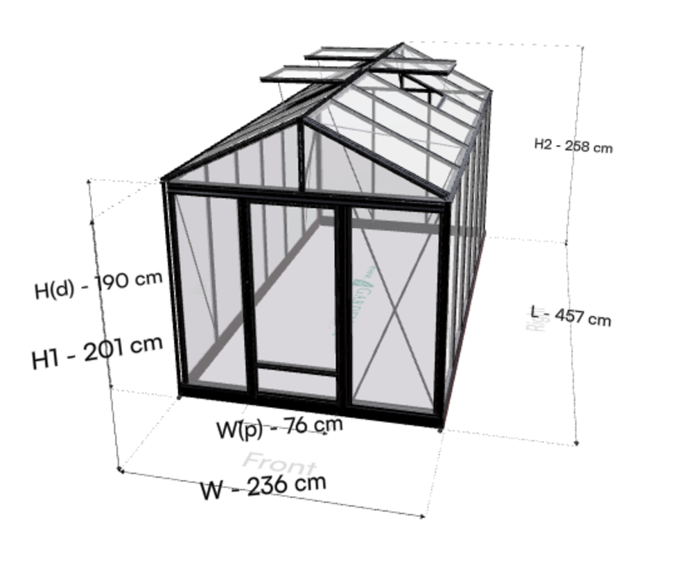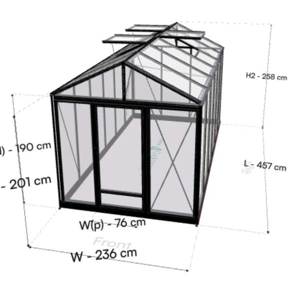 Med 10,7 m² får du god plass til hyller, plantebord og store plantekasser. Drivhuset passer perfekt for både hobbygartnere og de som ønsker å øke produksjonen eller utvide vekstsesongen. Takventiler sikrer effektiv ventilasjon og bidrar til et stabilt klima.
