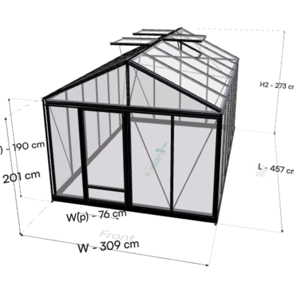 - Ytre mål (L × B × H): 457 cm × 309 cm × 201 cm