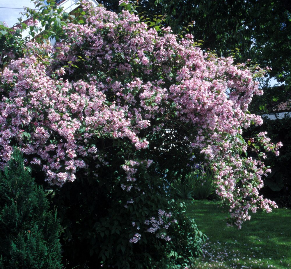 Blomstrer på fjorårsskudd. Klipp straks etter hovedflor: ta 1/3 av eldste skudd ved basis og kort inn lange skudd for kompakt form. Lett sommerklyp kan trigge gjenblomstring.