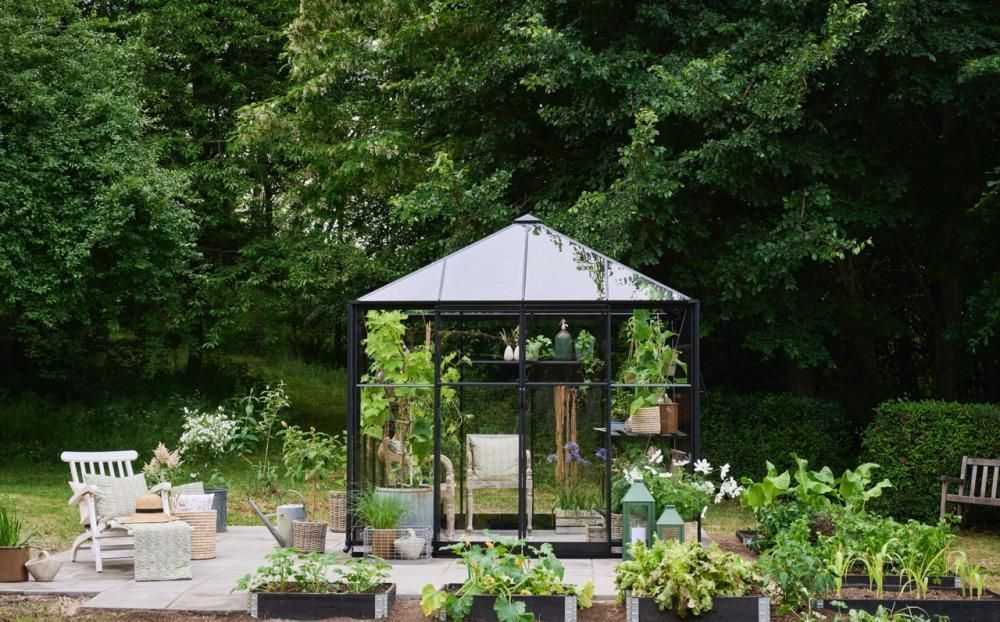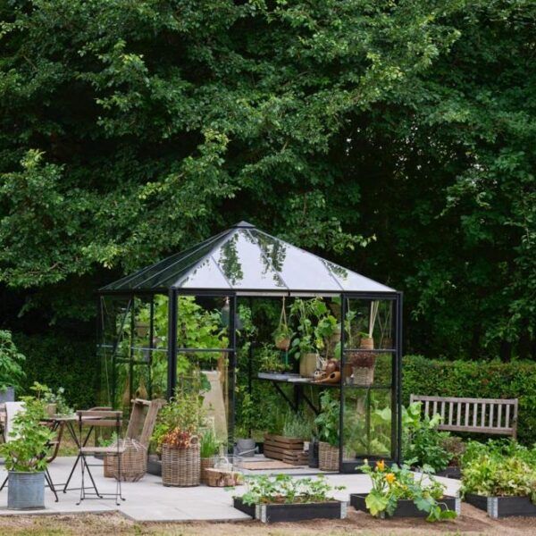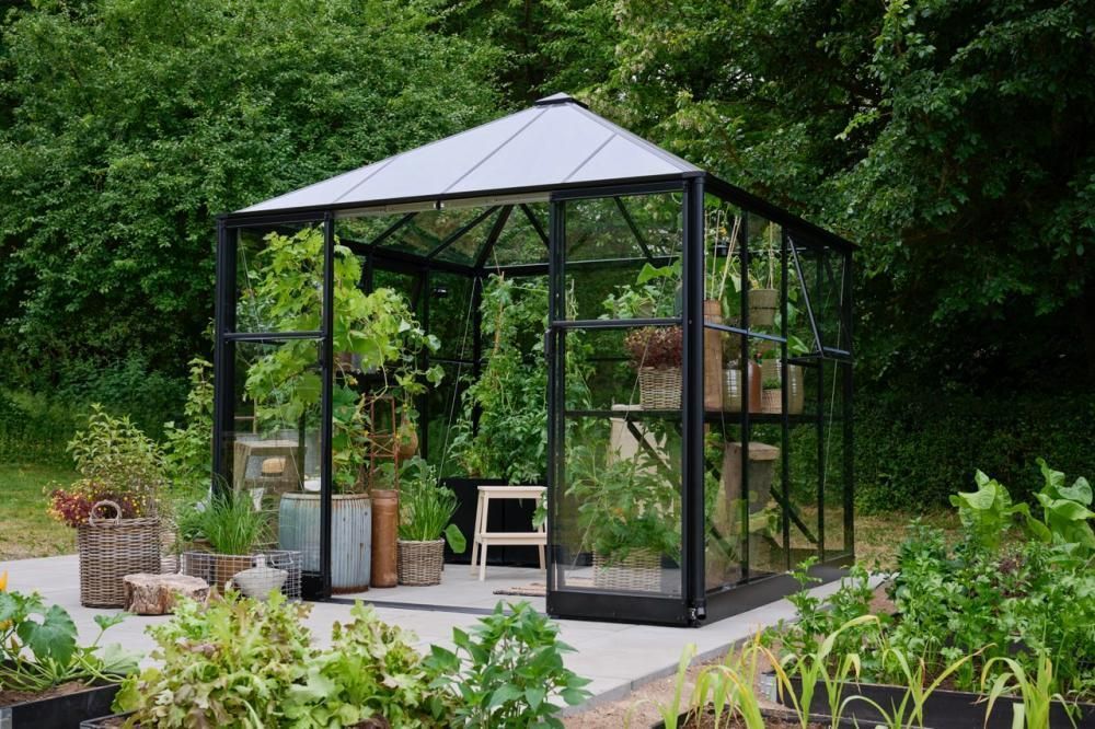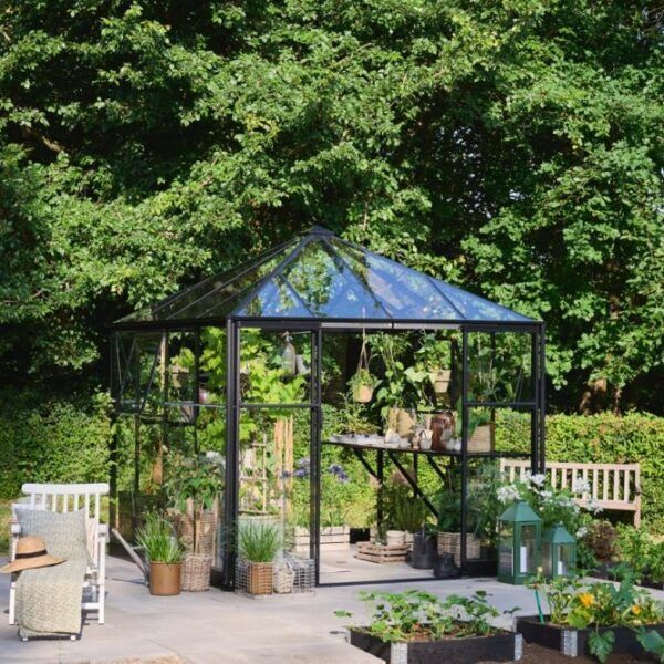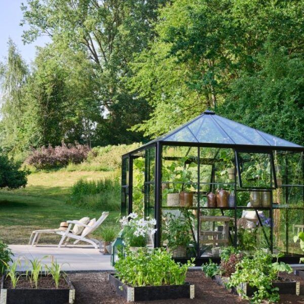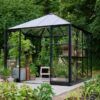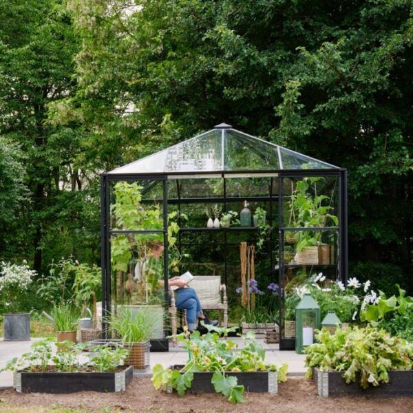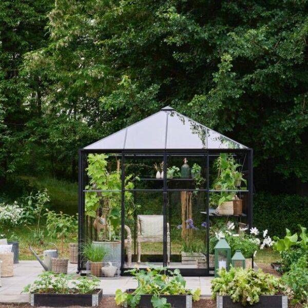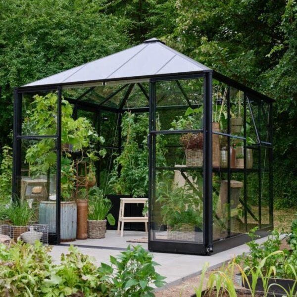 Halls Qube Square kommer med 3 mm herdet sikkerhetsglass i både tak og vegger, 2 åpningsbare vinduer og dobbel skyvedør med lav terskel. Inkludert i prisen er også en solid stålsokkel.