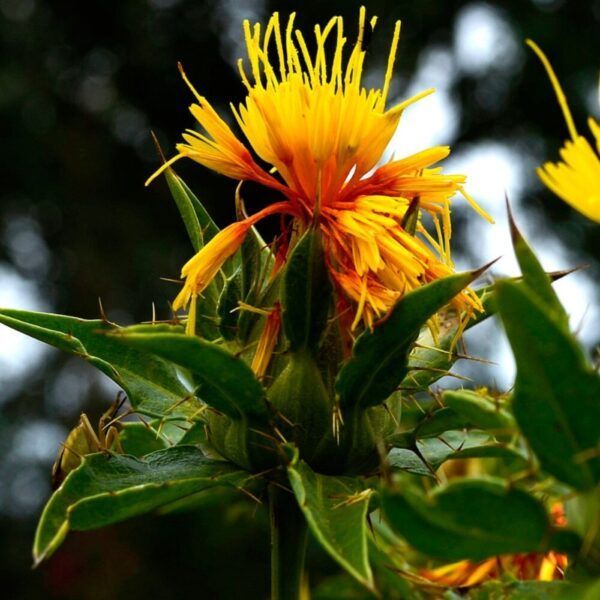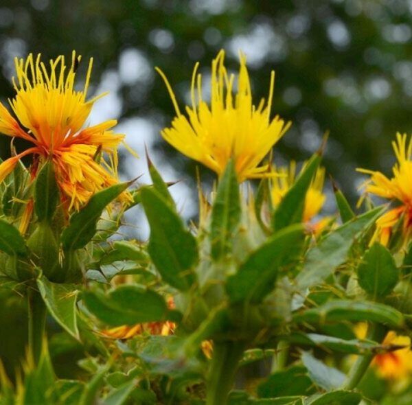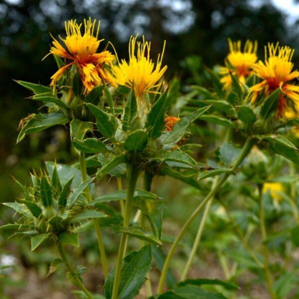 Fargetistel. Blomstrer i oransje, svært fine til tørking og beholder fargen godt. Lange stilker, fin i høye dekorasjoner. Fargeplante som gir gule til røde nyanser.