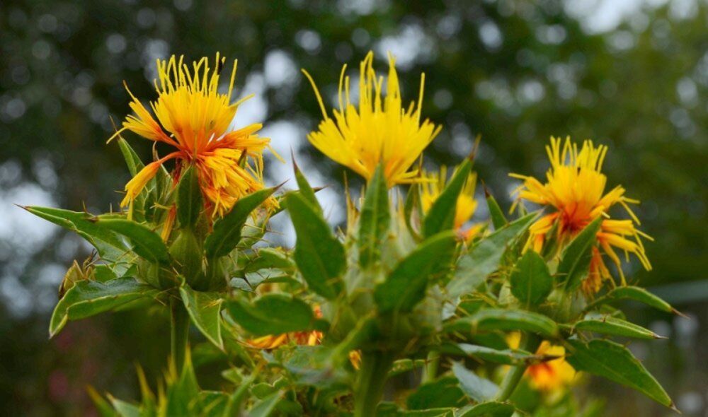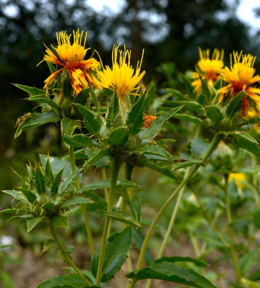 Fargetistel. Blomstrer i oransje, svært fine til tørking og beholder fargen godt. Lange stilker, fin i høye dekorasjoner. Fargeplante som gir gule til røde nyanser.