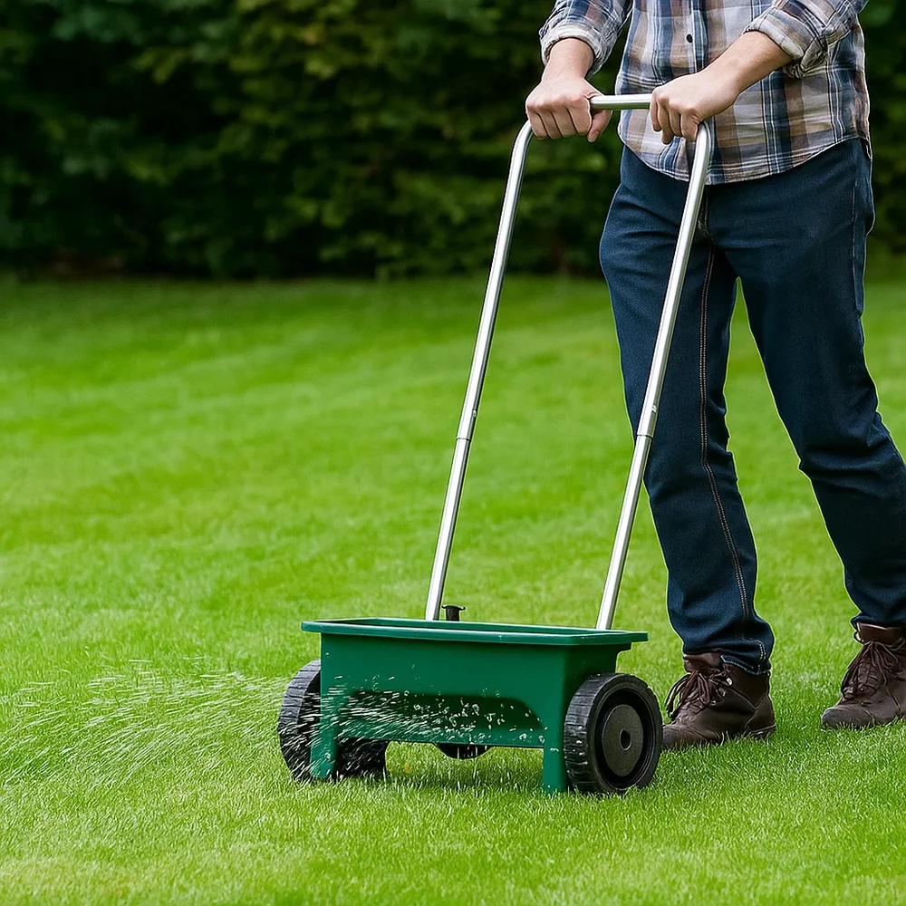 Brukes til å gjødsle, så eller kalke plen. Om vinteren kan den brukes til salt, sand eller is/snømelt.
