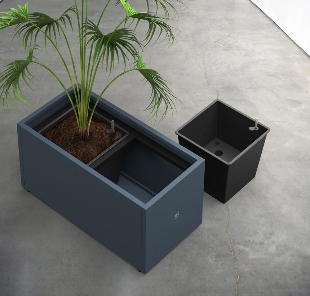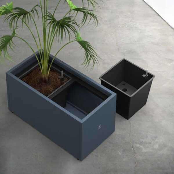 Selvvanningskasse som plasseres i holderen for selvvanningssystemet til Metal Planter 50. Kommer med viser for vannmengde. Bør borres dreneringshull i hvis de skal brukes utendørs.