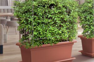 I denne pakken kommer plantekassen sammen med underskål,plantestøtte med komplett selvvanningssystem og hjul for enkel forflytning.