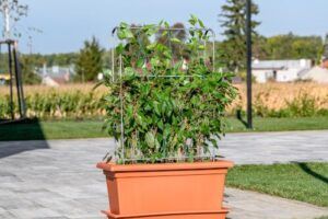 I denne pakken kommer plantekassen sammen med underskål,plantestøtte med komplett selvvanningssystem og hjul for enkel forflytning.