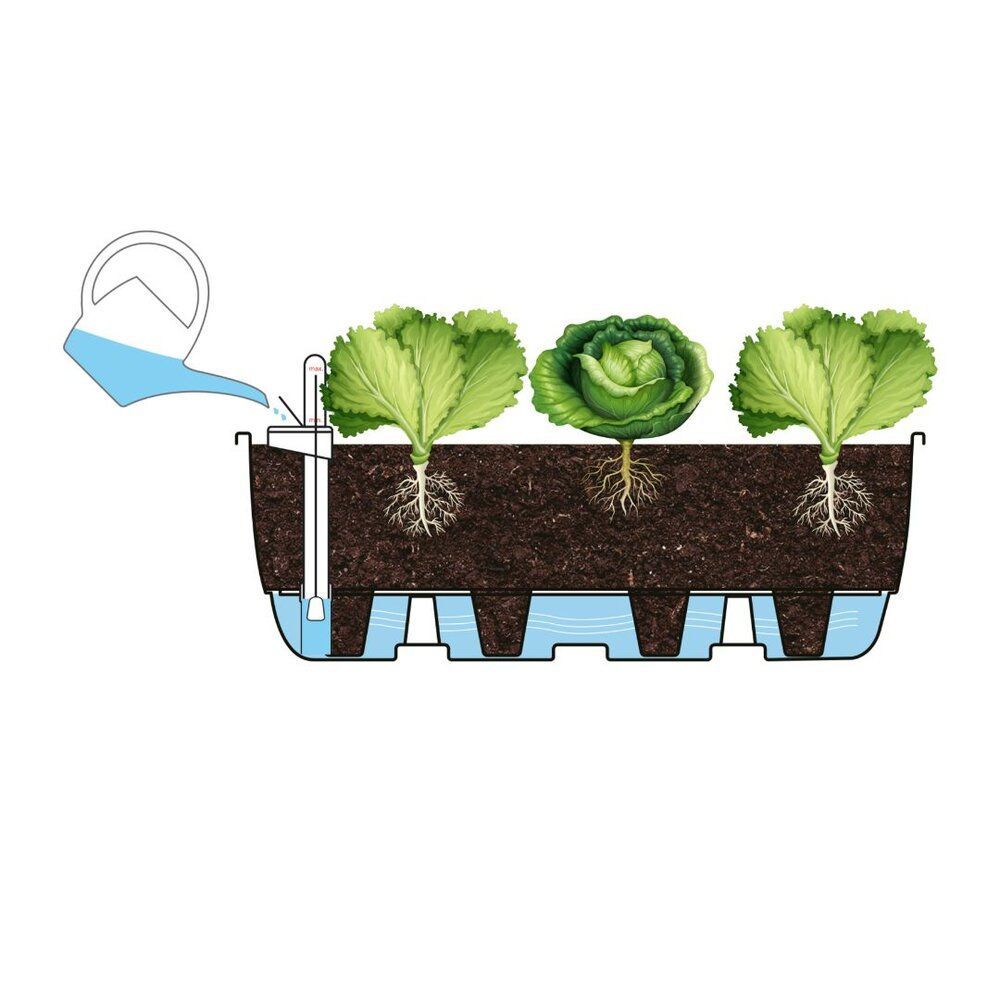 Perfekt løsning for deg som ikke har mulighet til å jevnlig følge med på vanning av plantene. Fyll opp vanntanken, og selvvanningssystemet vil jevnt fordele fuktigheten for å holde plantene sunne og vakre. Valgfri drenering i toppen av vanntankdelen.