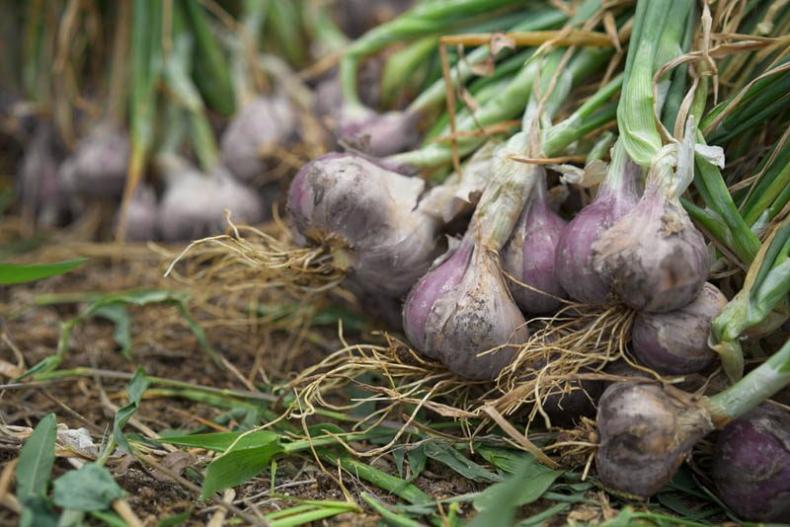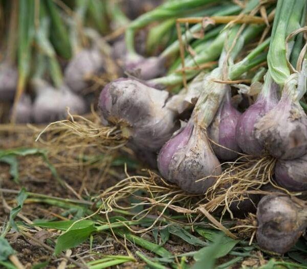 Når bladene bøyer seg ned, er det tid for å høste løken, vanligvis i august eller september. La bladene være festet til løken etter høsting – de er nyttige for å henge opp løken for å tørke den.