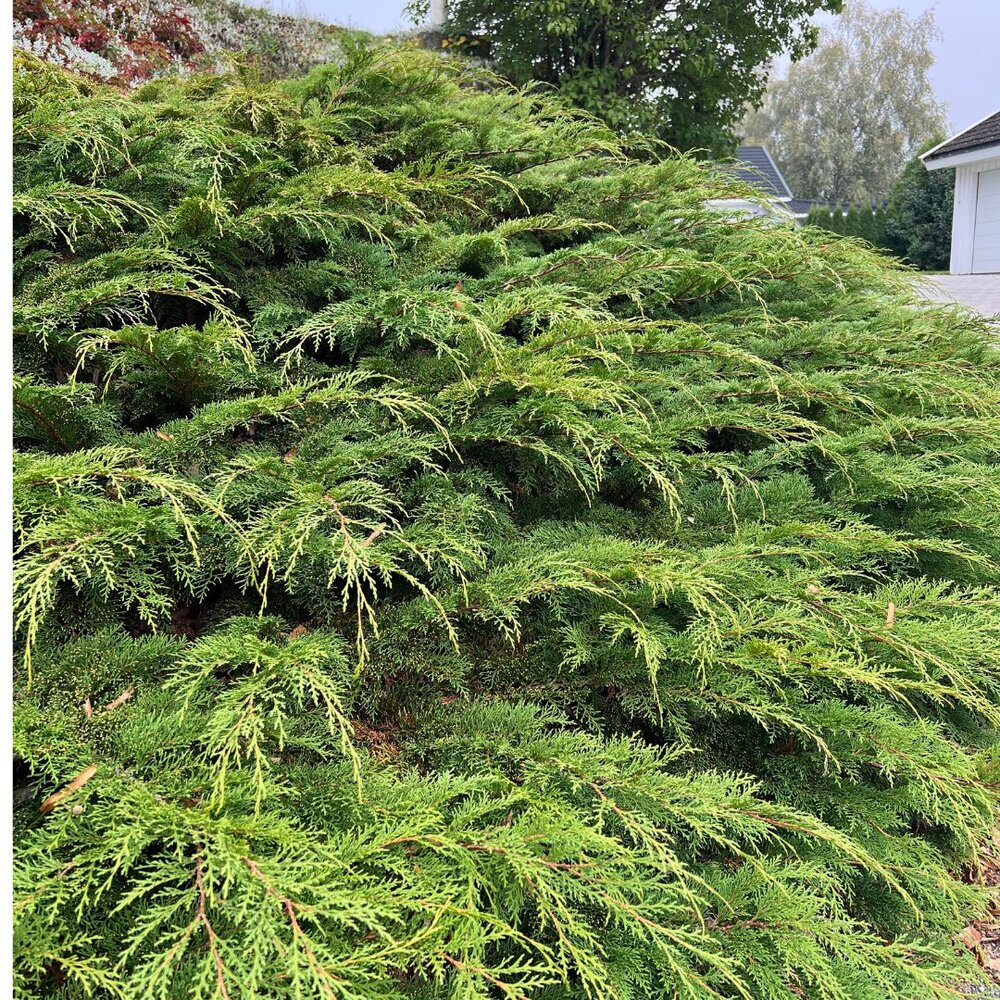 Russisk sypress fra Sibir, her som E-seleksjon for nordisk klima. Lav, bred vekst med elegante, horisontale skudd og høy vinterherdighet.