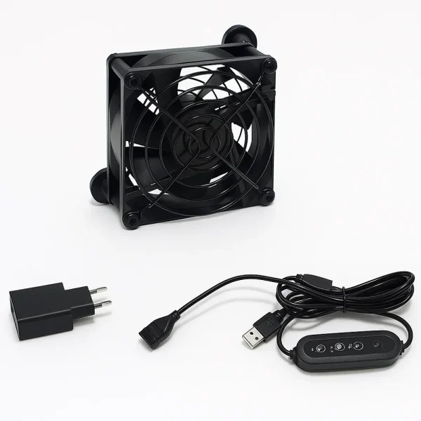 Pakken inneholder én USB-vifte med smartstyring. Viften kan kobles til strøm via USB og styres manuelt eller automatisk. Den kan brukes alene eller kobles sammen med opptil tre vifter for økt luftflyt.