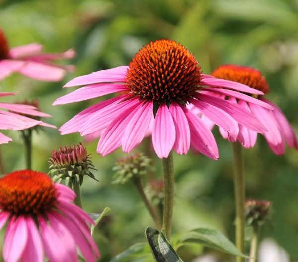 Solhatt er en robust staude som blomstrer fra midtsommer til høst med store, karakteristiske kurvblomster og dekorative frøhoder. Den trives best i full sol og veldrenert jord, og tåler tørke når den er etablert. Solhatt liker å stå i ro – full kraft kommer ofte fra år 2.