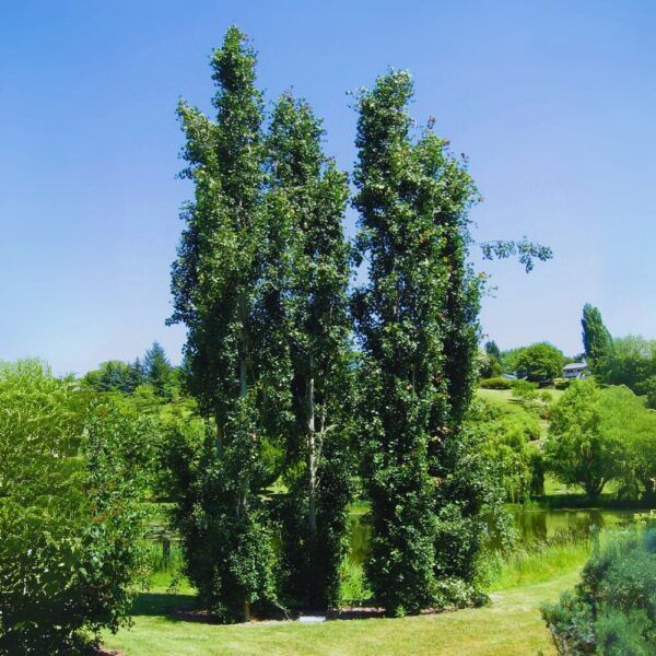 Kolonnedannet utvalg av norsk osp, brukt der plassen er liten og høyde ønskes raskt. Danner slank søyle med tett bladverk.