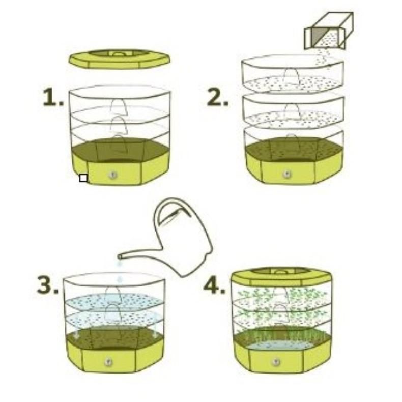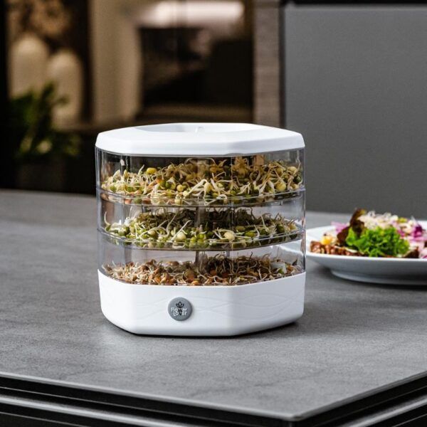 Smart spirekasse i hvit plast for enkel dyrking av spirer og mikrogrønt hjemme.