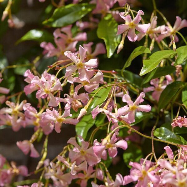 En dekorativ klatreplante med små, stjerneformede rosa blomster som dufter nydelig gjennom hele sommeren. Stjernejasmin ‘Pink Showers’ trives i solrike, lune områder og er ideell for dyrking i krukker, espalier eller pergola. Denne lettstelte planten gir uteområdet et romantisk og eksotisk preg med sin duftende blomstring og frodige blader.
