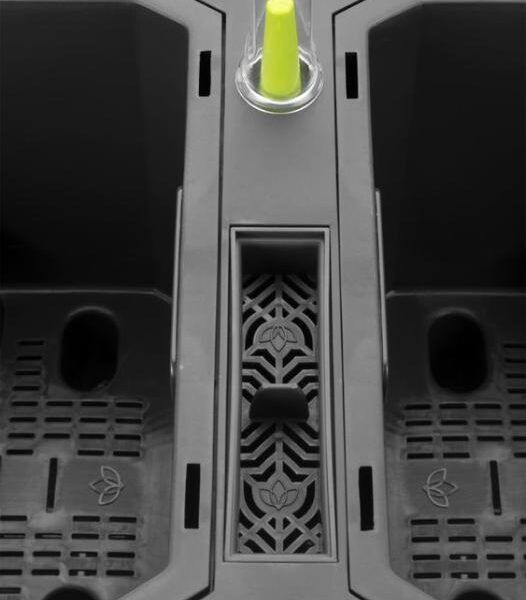 - Selvvanningssytem med en tank på 14 liter vann (kan også brukes uten ved å åpne dreneringshullet i bunnen av kassa)