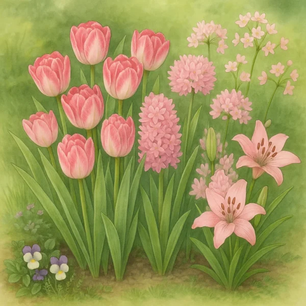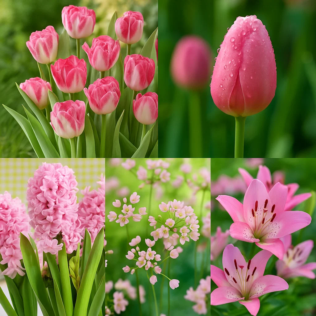 Denne nøye utvalgte pakken kombinerer klassiske løkvekster i rosa nyanser som passer perfekt sammen for en vakker, harmonisk blomstring fra vår til tidlig sommer.
