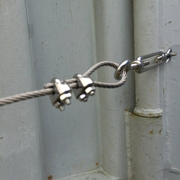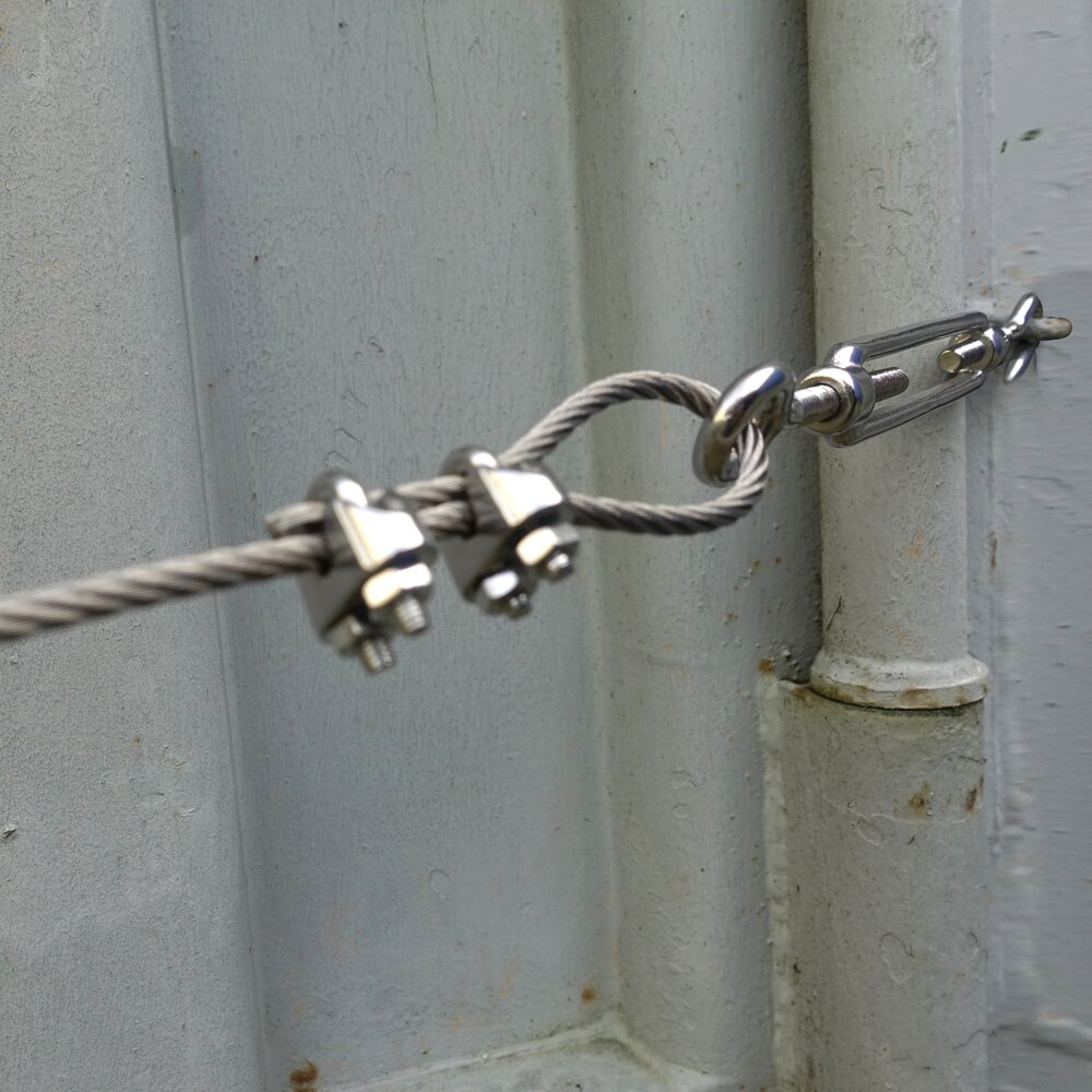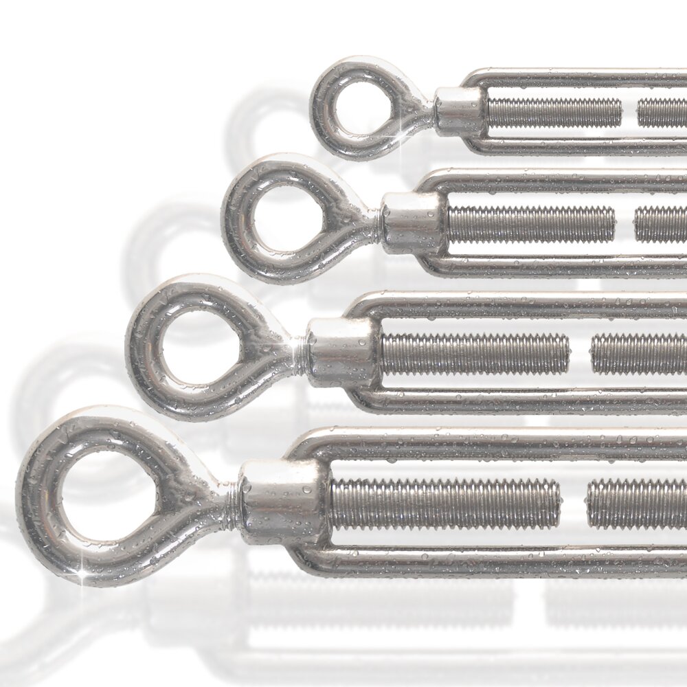 Klassisk strekkfisk i syrefast stål – enkel og solid justeringsløsning for 4 mm wire, perfekt til espalier og fasademontering.