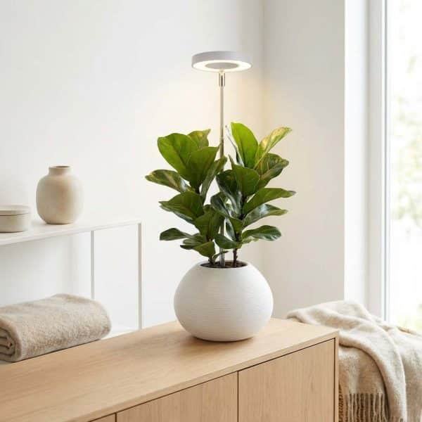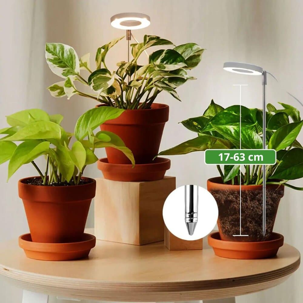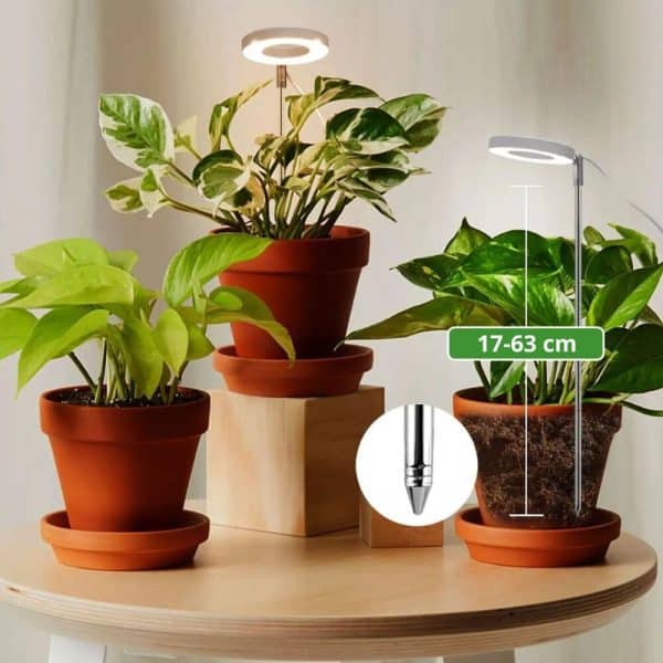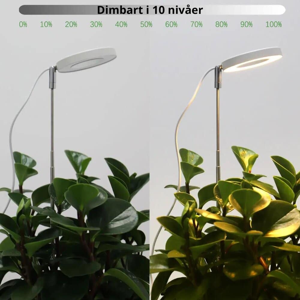 Vekstlys som kan settes rett i potten, ideell for å gi inneplantene lys også i de mørkeste vintermånedene. Lyset kommer med dimmbart lys (10-100%) og timerfunksjon (3/9/12 timer) slik at plantene kan få ideelt med lys gjennom vinteren. Høydejusterbart mellom 17 og 63 cm.