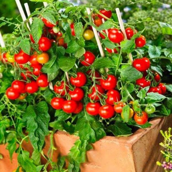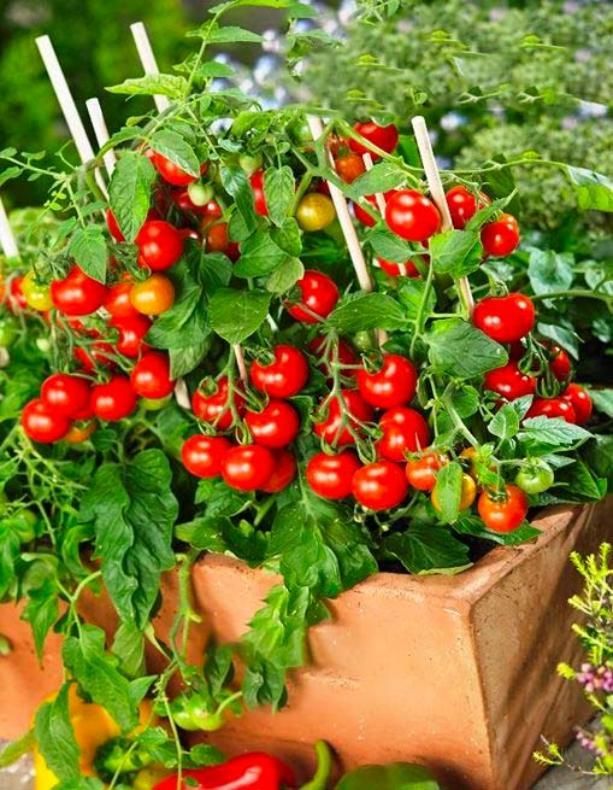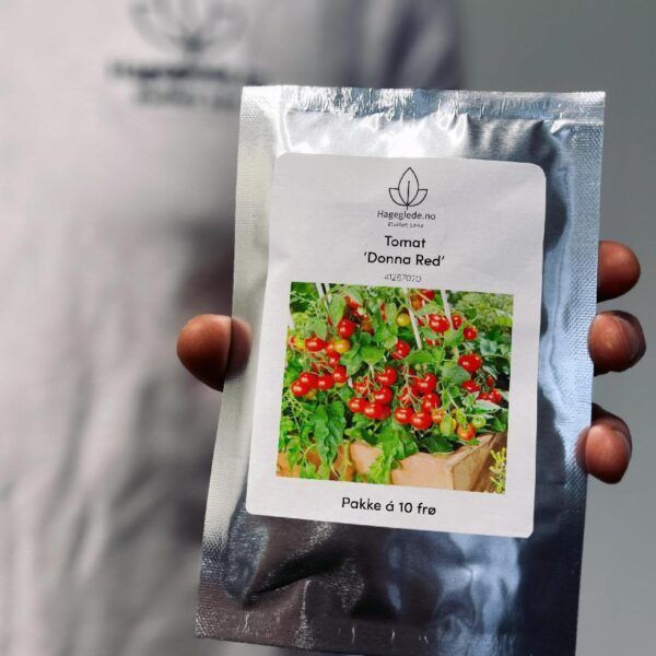 Solanum lycopersicumMåten denne kompakte tomatplanten vokser på gjør den ideell for større krukker og hengeampler. Donna F1 produserer rikelig med rød frukt. Produserer også raskt ny frukt etter første høsting, så planten vil fortsette å gi hele sesongen.