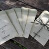 Ferdig trykte frøposer du kan bruke til frøene du har samlet til deg selv. Skrivefelt for navn og år på forsiden og egne notater på baksiden.