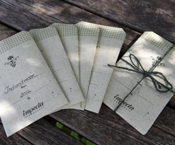 Laget av 100 gram frøpose papir med blank inne.