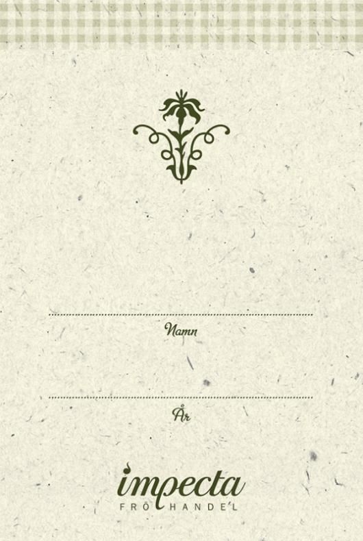 Ferdig trykte frøposer du kan bruke til frøene du har samlet til deg selv. Skrivefelt for navn og år på forsiden og egne notater på baksiden.
