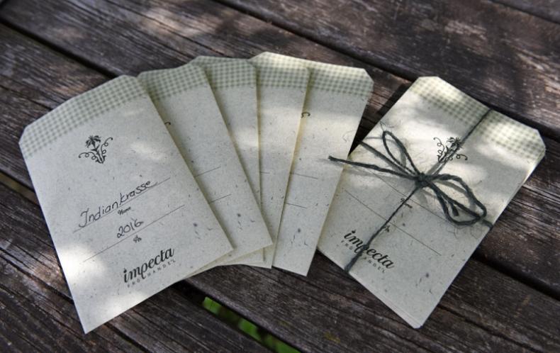 Laget av 100 gram frøpose papir med blank inne.