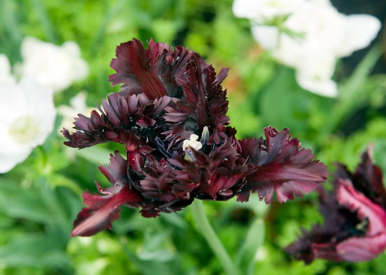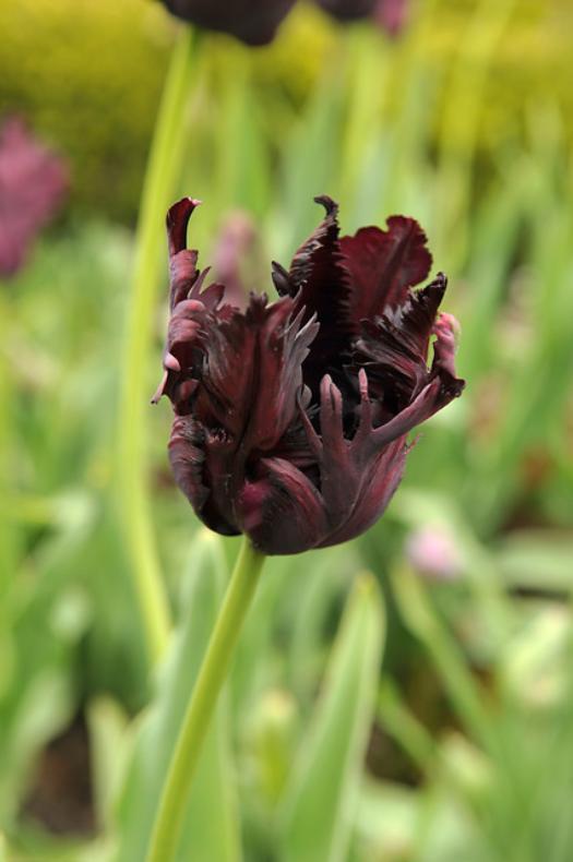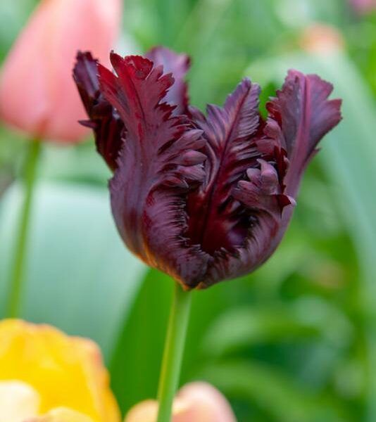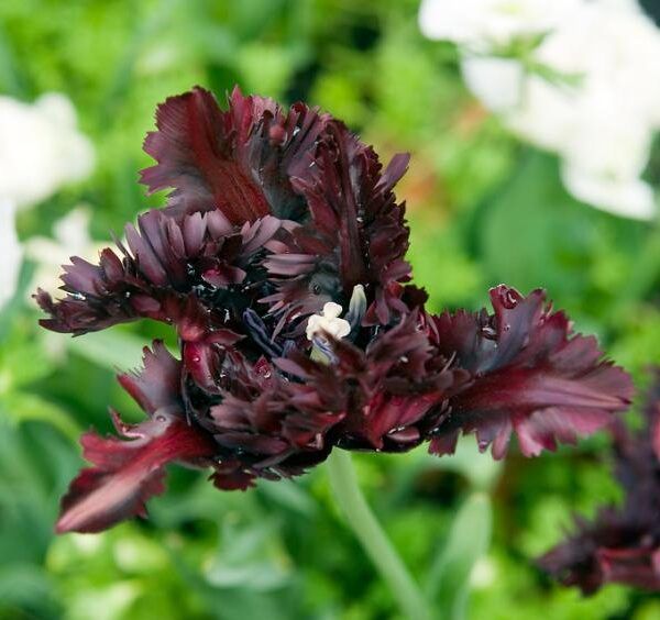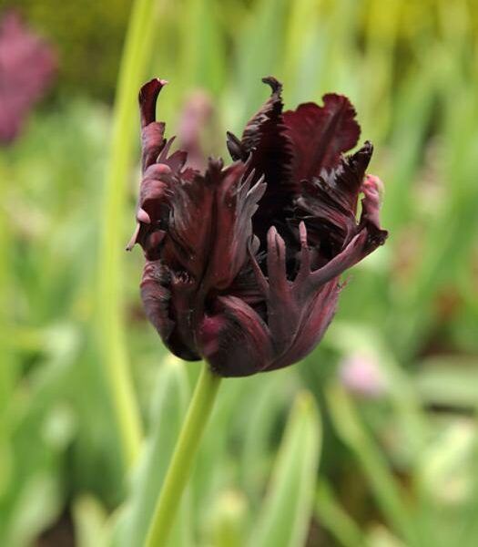 Tulipa 'Black Parrot'Blendende mørk lilla papegøyetulipan. Nydelige rufsete kronblader og den mørke blomsten er en flott kontrast til den lyse stilken.