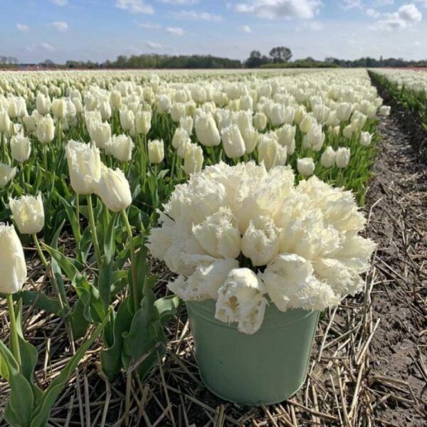 Tulipa 'Noordeneide'Snøhvite tulipaner med frynsete kronblader. Elegante som få. Hagen din fortjener noen av disse!
