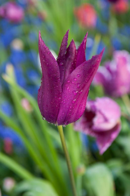 Tulipa 'Purple Dream'Stor og fløyelsmyk lilla tulipan som under modning åpner seg opp og viser sitt elfenbensfargede hjerte. Den relativt høyreste og store blomsten trives best i sola og i mindre vindutsatte bed.