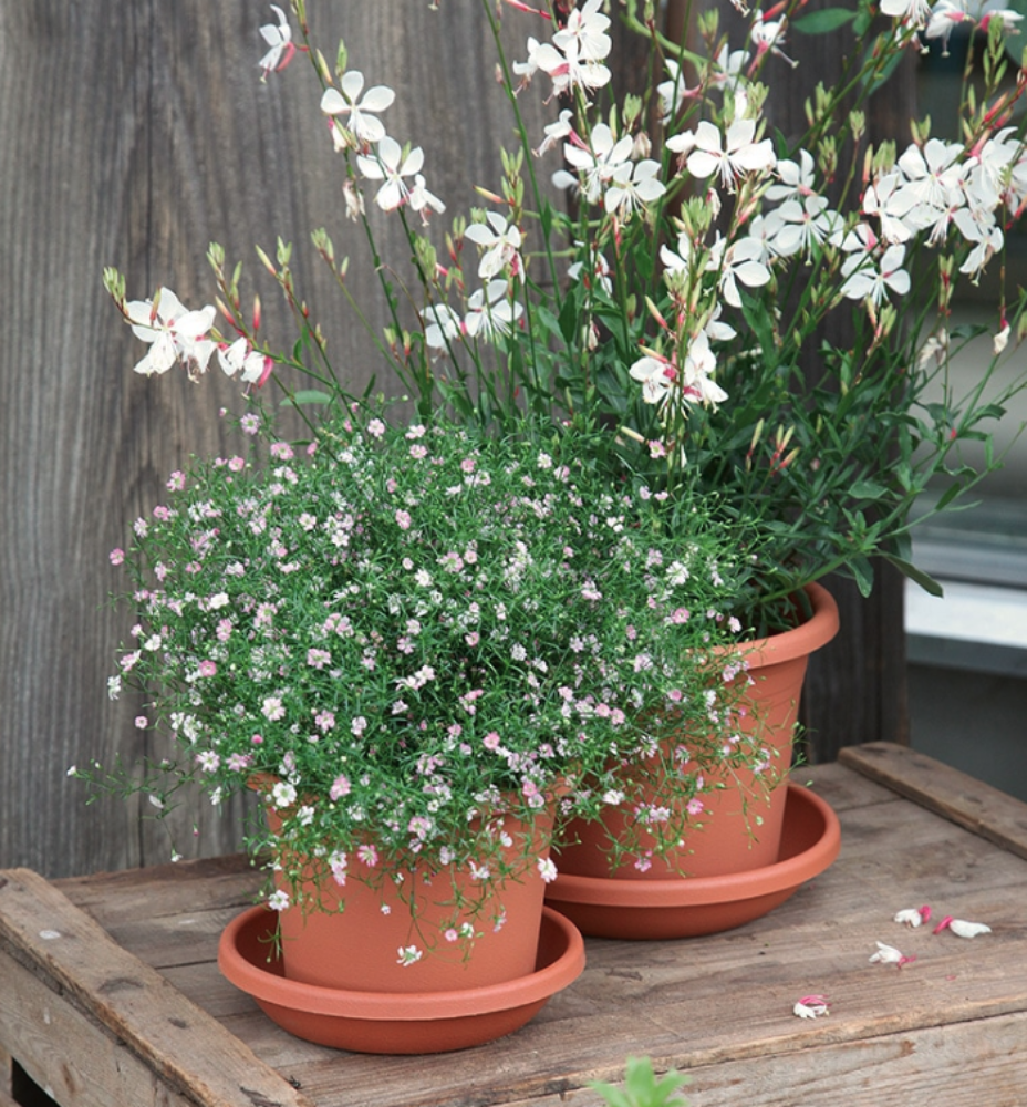 Terracotta-farget potteskål i resirkulert plast for undervanning.