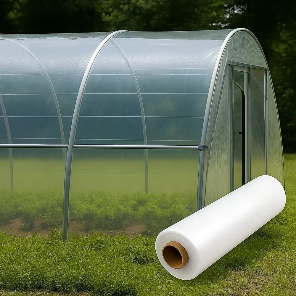UV-stabilisert og klar drivhushusfolie i 180 my tykkelse. 8 x 35 meter. 280 m2 per rull.