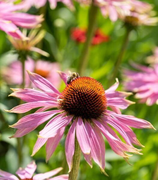Stor pakke med røde solhatter som gir farge og liv i hagen. Ca. 80–100 cm høy og blomstrer fra juli til september. Trives i sol og veldrenert jord. Perfekt for større bed og pollinatorvennlige hager.